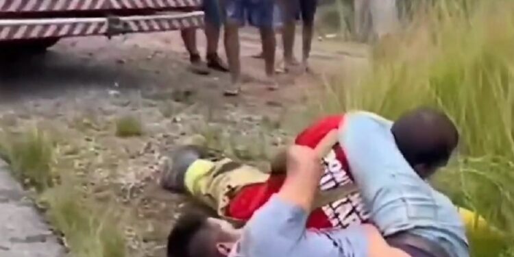 Foi então que um dos indivíduos que estavam no local se apossou de parte da carga e foi repreendido pelo bombeiro. “Houve agressão e ambos caíram ao solo. Neste momento, o indivíduo tentou ferir o militar com um canivete, sendo impedido pelo mesmo”, detalha o Corpo de Bombeiros por nota.