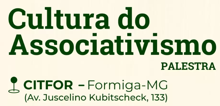 No dia 20 de agosto, às 18h, acontecerá a palestra “Cultura do Associativismo” no CITFOR (Av. Juscelino Kubitscheck, 133 – Formiga). Esta é uma excelente oportunidade para fortalecer sua produção por meio da união e cooperação.