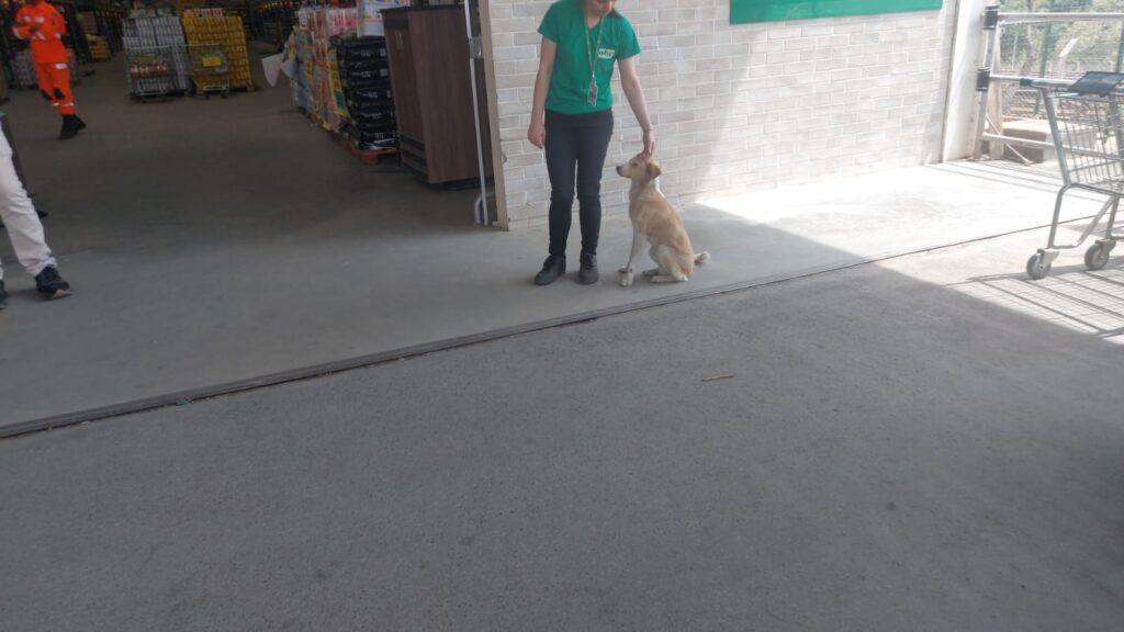 Ao chegarem ao local, os militares constataram que se tratava de um cão sem raça definida, de porte médio (aproximadamente 60 cm de cernelha), pelagem curta rajada em tons de laranja com manchas brancas. O animal encontrava-se dócil, calmo e apenas circulava pelas dependências do supermercado, sem apresentar sinais de agressividade ou ferimentos.