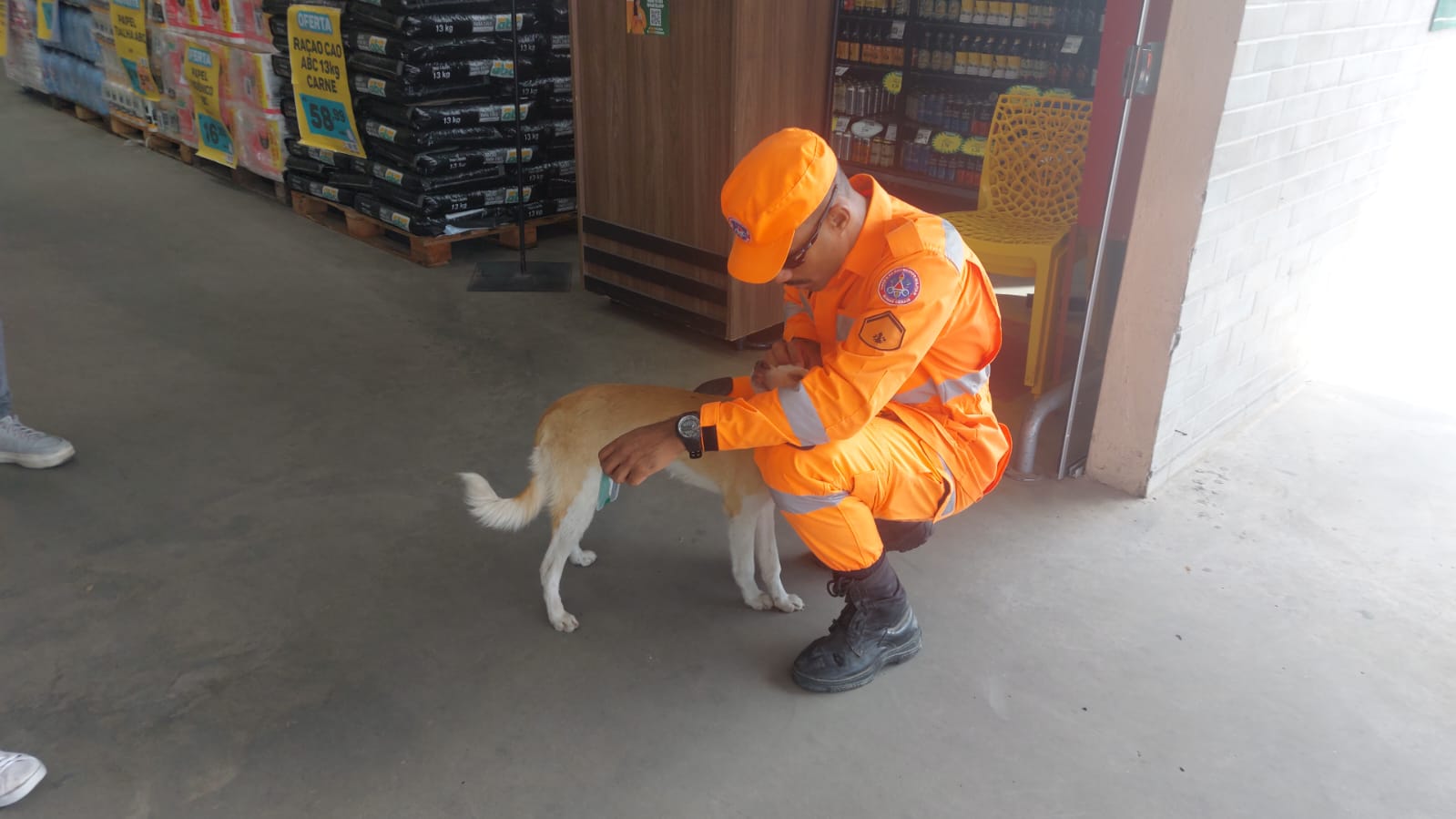 Ao chegarem ao local, os militares constataram que se tratava de um cão sem raça definida, de porte médio (aproximadamente 60 cm de cernelha), pelagem curta rajada em tons de laranja com manchas brancas. O animal encontrava-se dócil, calmo e apenas circulava pelas dependências do supermercado, sem apresentar sinais de agressividade ou ferimentos.