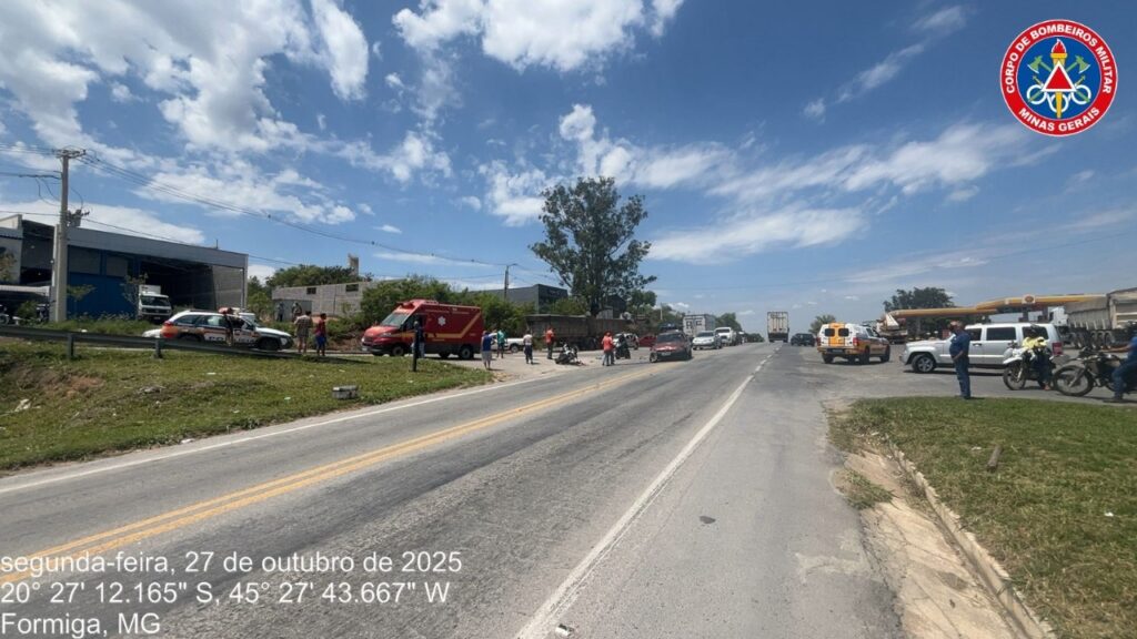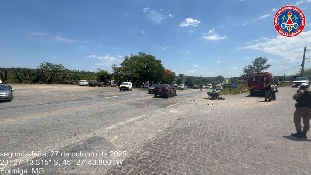 Nessa segunda-feira (27), a 4ª Companhia do Corpo de Bombeiros de Formiga foi acionada pelo Centro de Operações Bombeiro Militar do 10º BBM (COBOM) para atendimento a uma ocorrência de colisão entre automóvel e motocicleta na MG-050, no bairro Souza e Silva.