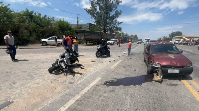 No local, a equipe de resgate encontrou uma motocicleta BMW/R1200 e um automóvel Ford Escort, ambos com danos resultantes da colisão. O condutor da moto encontrava-se caído no acostamento, consciente, orientado e já sem o capacete, queixando-se de fortes dores na região do quadril e apresentando fratura fechada no braço esquerdo. Os ocupantes do automóvel estavam em pé sobre a via e dispensaram atendimento.