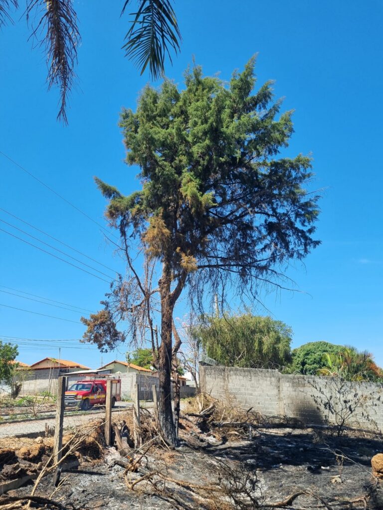 Nessa segunda-feira (6), o Corpo de Bombeiros Militar de Formiga realizou o corte de uma árvore queimada que apresentava risco iminente de queda na avenida Laranjeiras, no bairro Ércio Rocha.