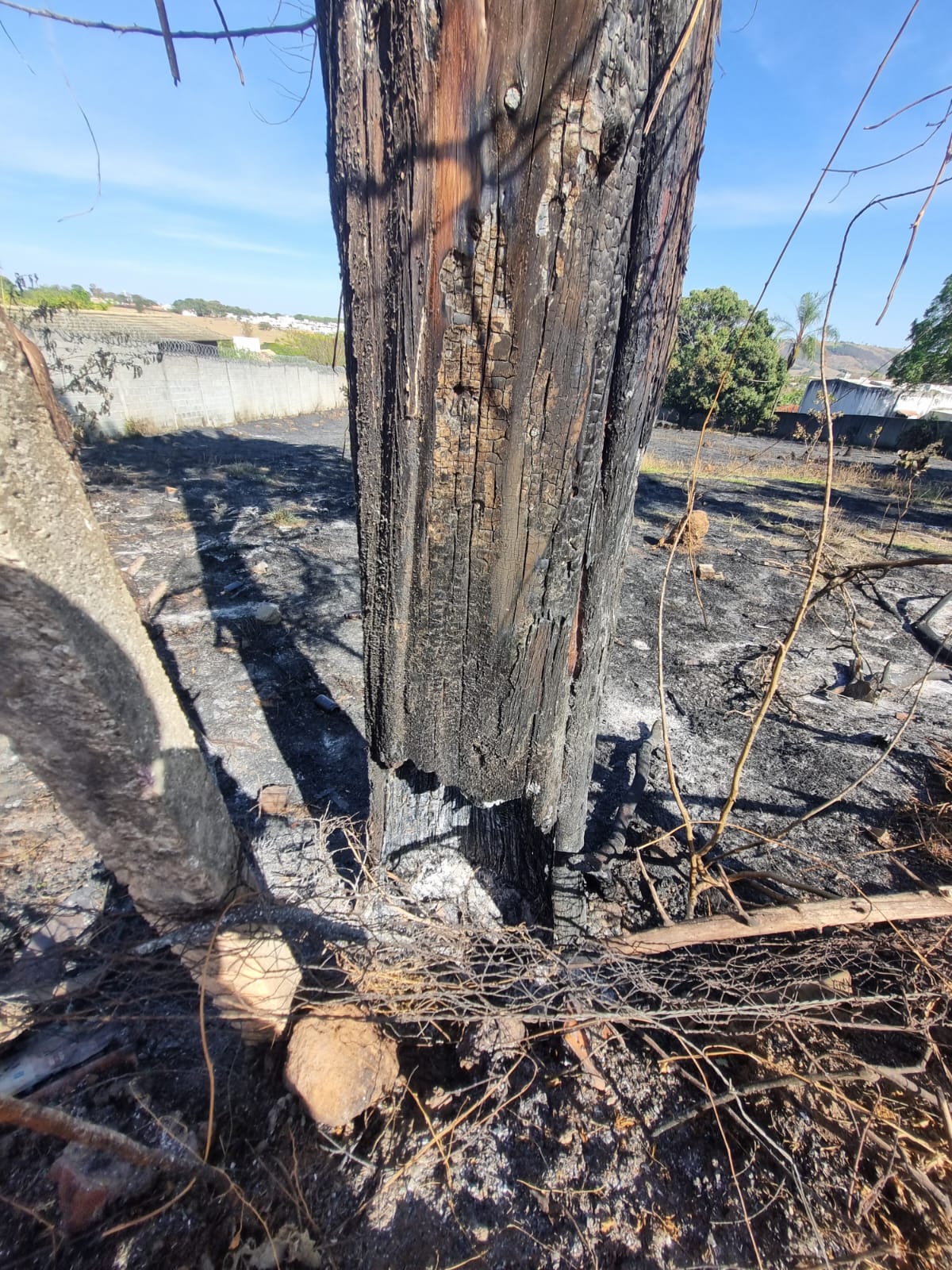 Nessa segunda-feira (6), o Corpo de Bombeiros Militar de Formiga realizou o corte de uma árvore queimada que apresentava risco iminente de queda na avenida Laranjeiras, no bairro Ércio Rocha.