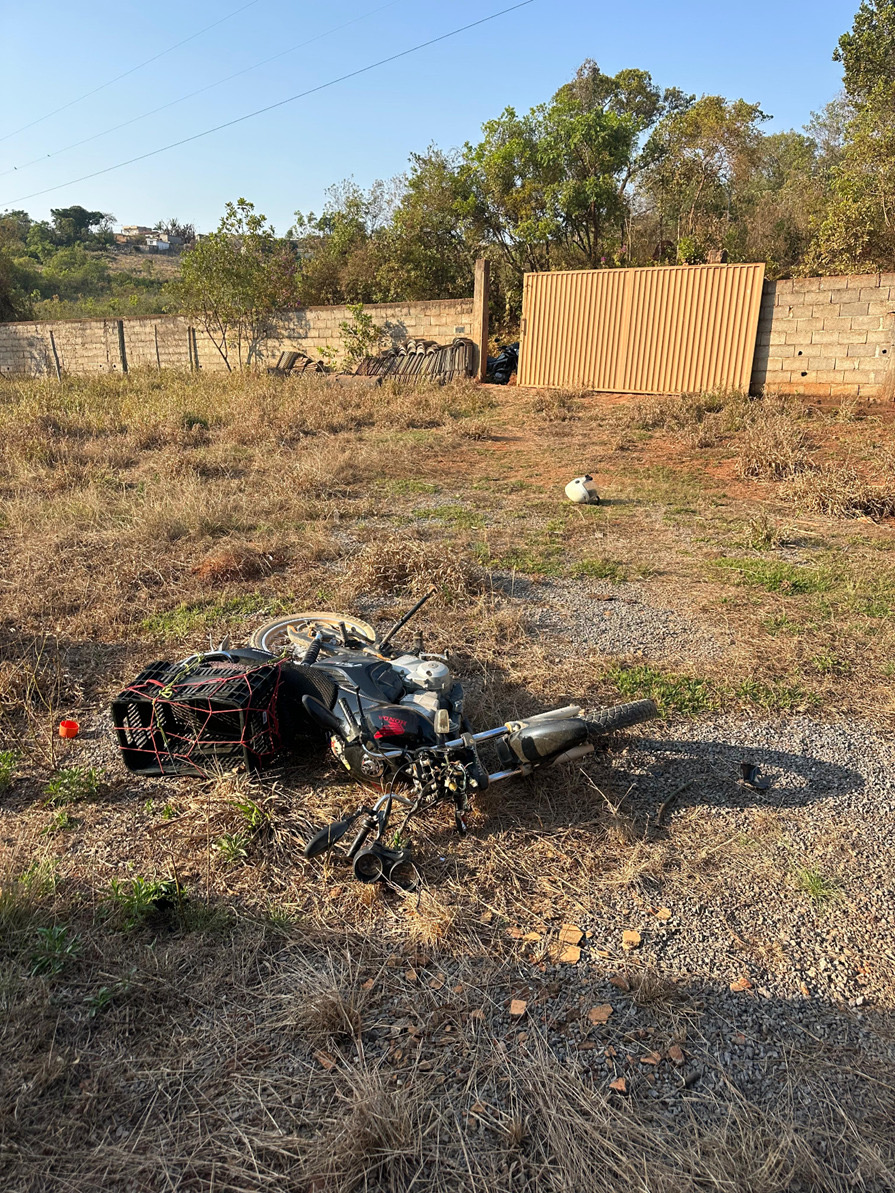 A guarnição policial iniciou diligências para identificar o autor e localizar o veículo. Após receber informações de que a motocicleta estava abandonada em uma casa desabitada na zona rural de Camacho, a equipe da PM foi ao local e localizou o bem.