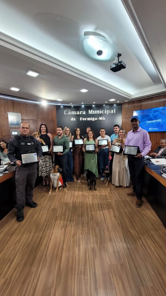 Além das votações, a reunião também celebrou a Outorga da Comenda Pata Amiga, instituída pela Lei Municipal nº 6.058/2023, concedida a pessoas que se destacam na defesa, proteção e bem-estar dos animais em Formiga. Receberam a homenagem: