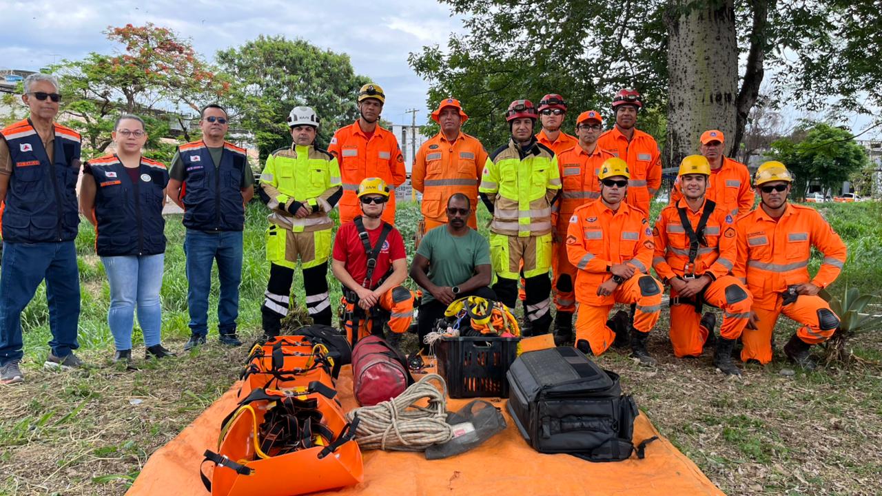 O exercício simulou um cenário de isolamento de vítimas por enxurrada, permitindo aos bombeiros o treinamento de táticas de aproximação, estabilização e retirada segura de pessoas em áreas de risco.