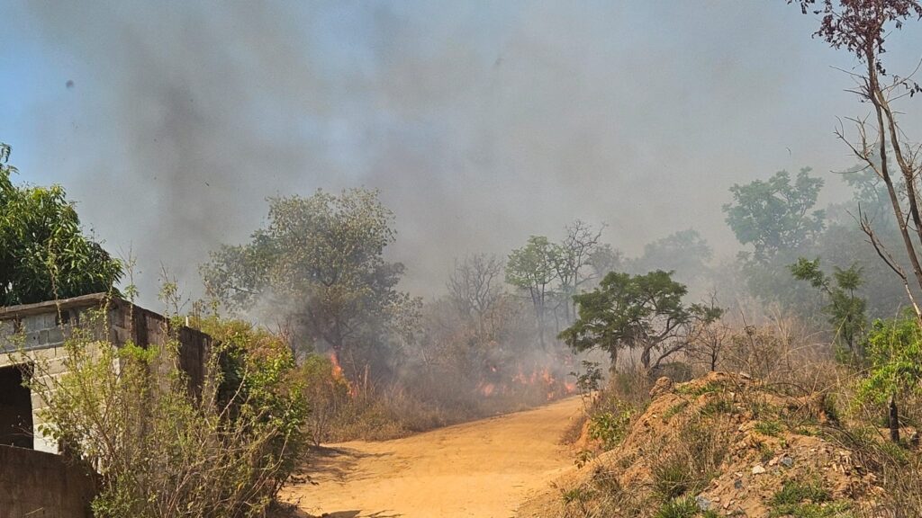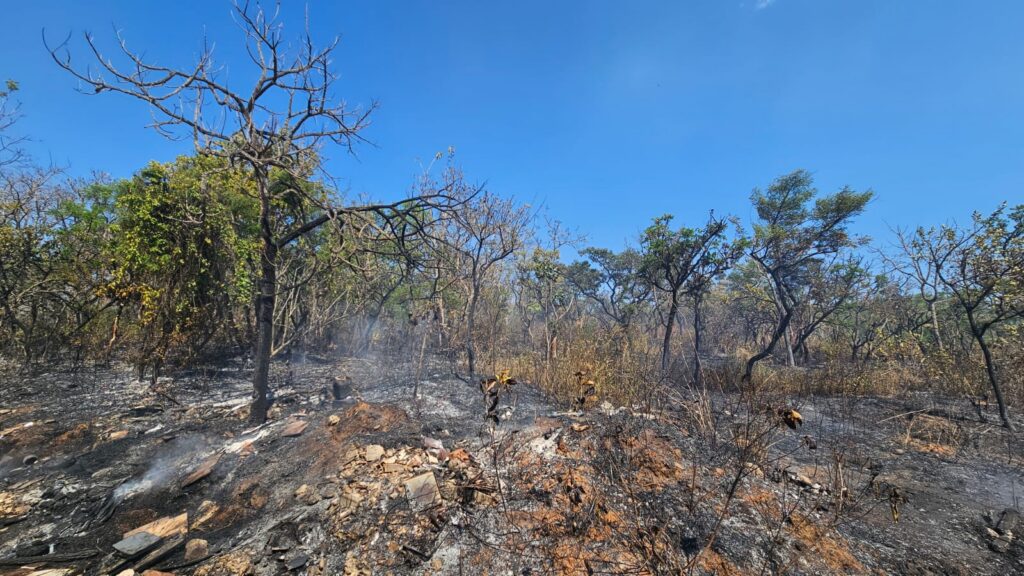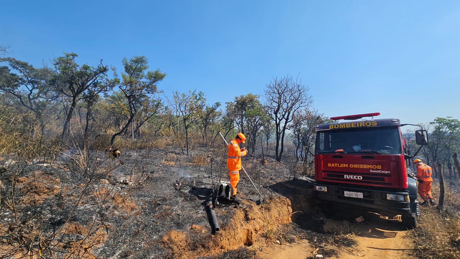Ao chegarem, os militares encontraram uma linha de fogo de aproximadamente 100 metros em área de vegetação, caracterizando-se como incêndio superficial.