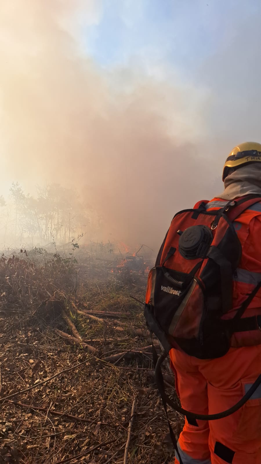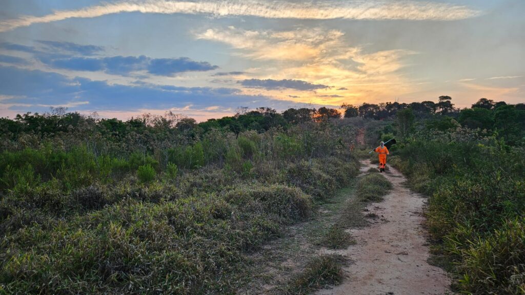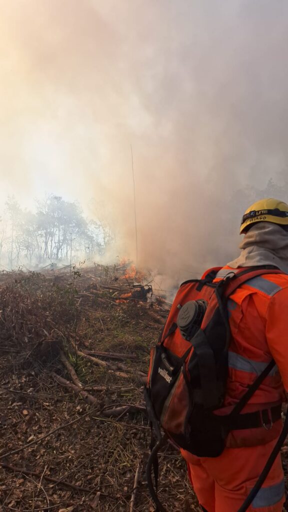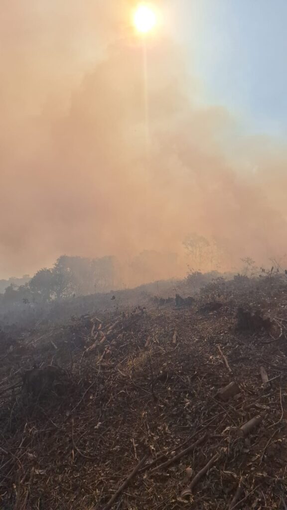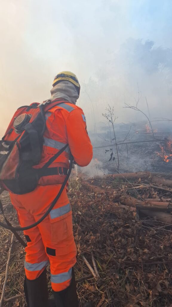Ao chegarem, os militares se depararam com uma linha de fogo de aproximadamente 3 quilômetros, atingindo áreas de pasto e vegetação de cerrado, com ocorrência de incêndio superficial e de copa em alguns pontos.