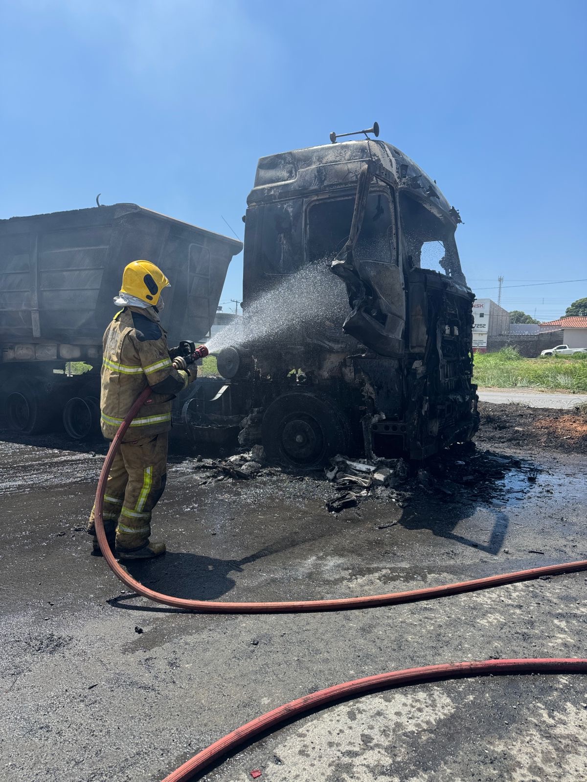 De imediato, os bombeiros iniciaram o combate ao fogo e realizaram a proteção das carretas acopladas e dos veículos que trafegavam pela rodovia, evitando que as chamas se espalhassem. Foram utilizados cerca de 6 mil litros de água para controlar a situação, com o apoio da empresa Transradar, que disponibilizou parte do recurso hídrico.