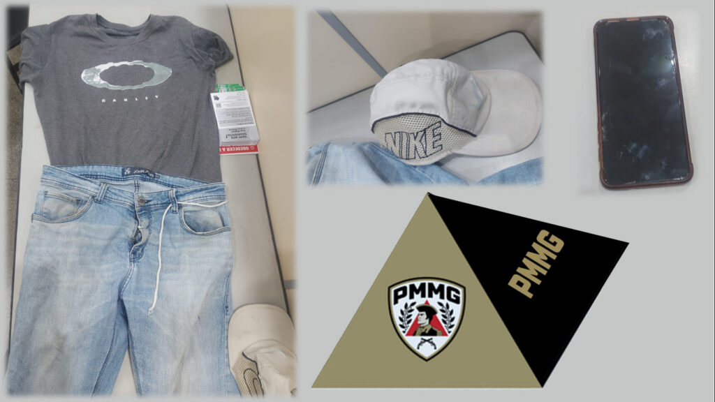 Desde o momento do crime, a Polícia Militar realizou diligências e, na segunda-feira (6), identificou o suspeito, que ainda não havia sido localizado. Durante as buscas em locais onde ele poderia estar, os militares encontraram o celular da vítima e roupas semelhantes às usadas pelo autor, conforme imagens registradas.