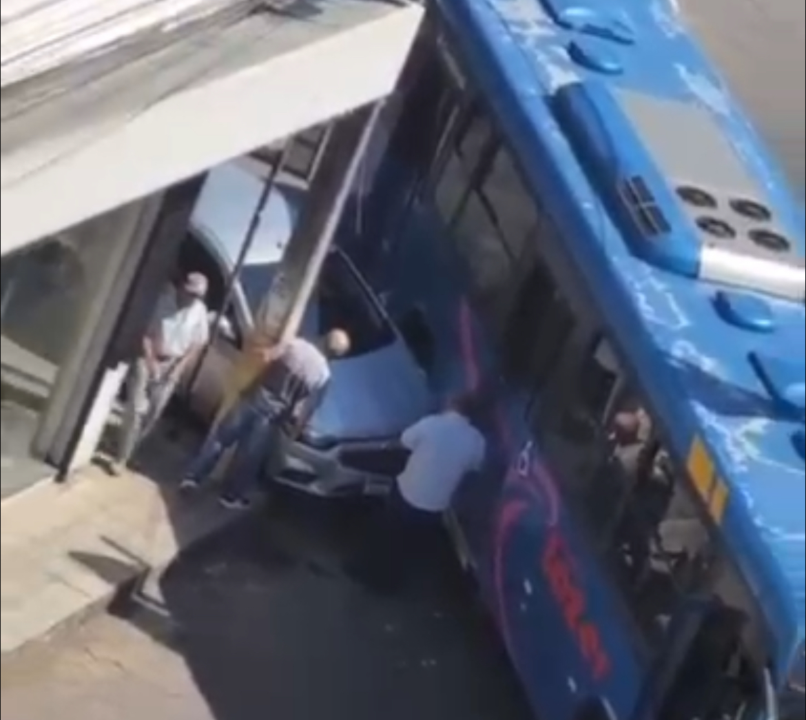 Segundo relatos dos motoristas, o ônibus estava parado no semáforo e avançou em direção à Santa Casa, enquanto o carro de passeio seguiu pela via à direita, considerada “direita livre”, momento em que ocorreu a colisão.