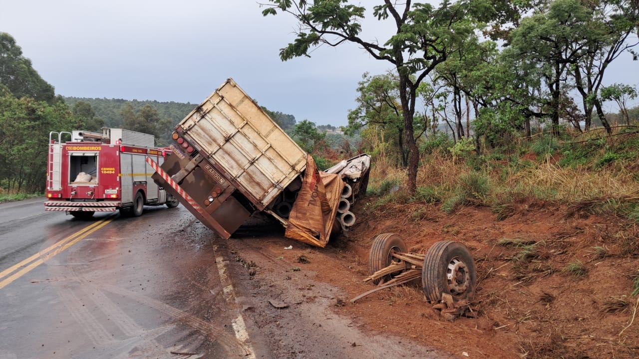 De acordo com informações da Polícia Rodoviária e do Corpo de Bombeiros, o motorista de uma carreta que transportava postes de concreto perdeu o controle da direção e saiu da pista, colidindo contra um barranco. Com o impacto, o condutor ficou preso às ferragens e não resistiu aos ferimentos, vindo a óbito no local.