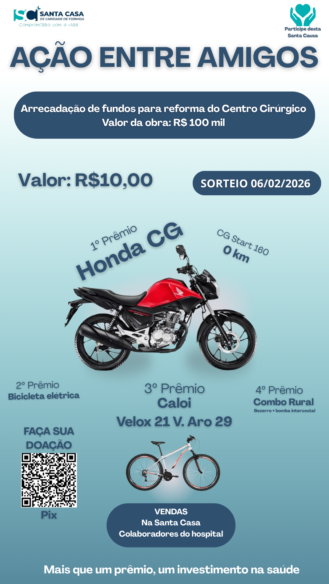 “As obras já estão em andamento e agora precisamos da ajuda da comunidade com a compra da rifa para garantir o término da revitalização. A ação solidária busca garantir melhorias na saúde da comunidade. Participe e contribua para essa Santa Causa.”, destaca a administração da Santa Casa.