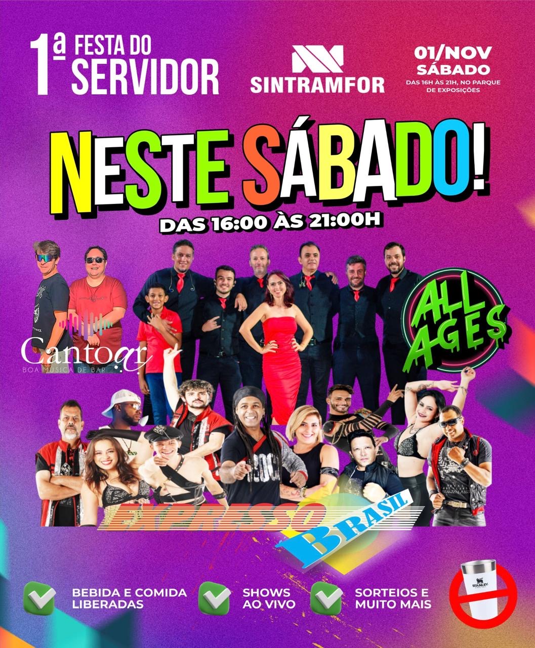 O Sindicato dos Trabalhadores Municipais de Formiga (Sintramfor) realiza neste sábado, 1º de novembro, a 1ª Festa do Servidor, no Parque de Exposições, das 16h às 21h. O evento promete uma tarde e noite de muita celebração, música, confraternização e reconhecimento aos servidores públicos do município.