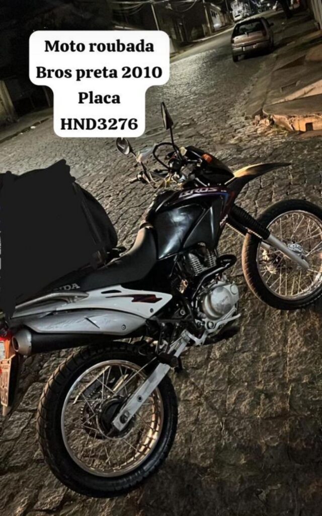 Nessa terça-feira (28), um entregador teve sua motocicleta furtada na rua Bahia, bairro Sagrado Coração de Jesus, enquanto realizava entregas em Formiga. O veículo, uma Honda Bros preta, ano 2010, foi levado por dois indivíduos que estariam em uma motocicleta CG branca, tanque redondo, segundo as primeiras informações e imagens obtidas por câmeras de segurança.