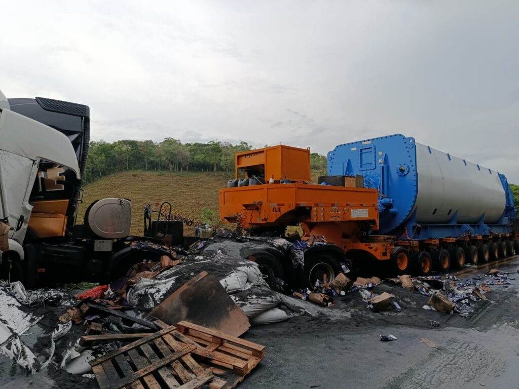 O condutor da carreta, um homem de 53 anos, natural de São Bernardo do Campo (SP), conseguiu sair da cabine e sofreu ferimentos leves.