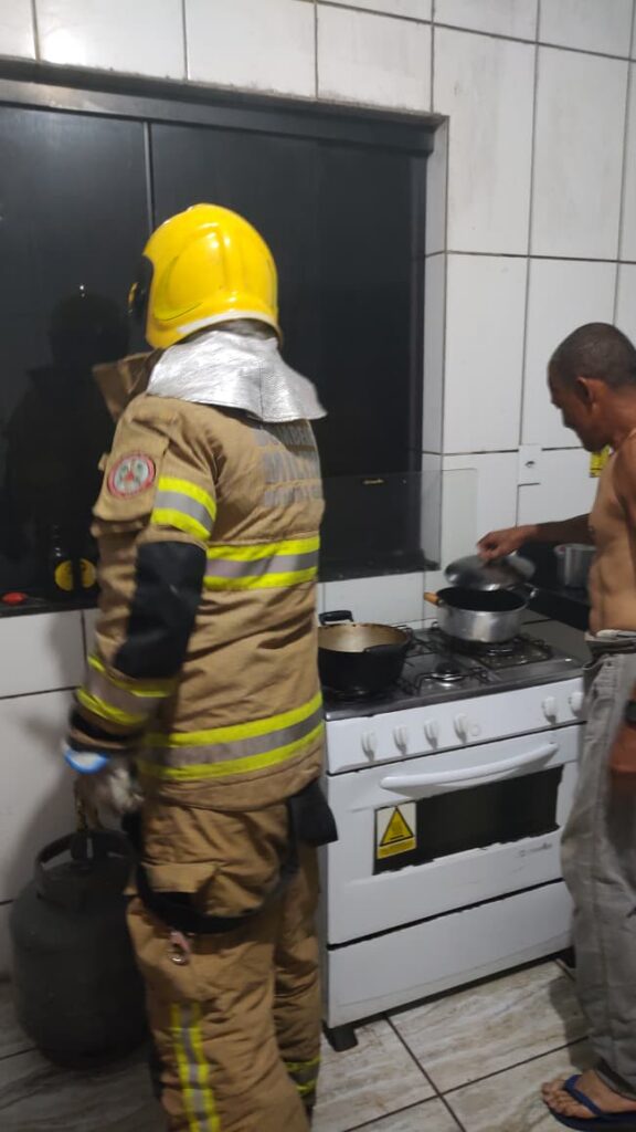 O morador recebeu orientações sobre os riscos de incêndios domésticos, especialmente quanto ao uso do fogão após consumo de bebidas alcoólicas, e sobre a importância de manter a casa ventilada.