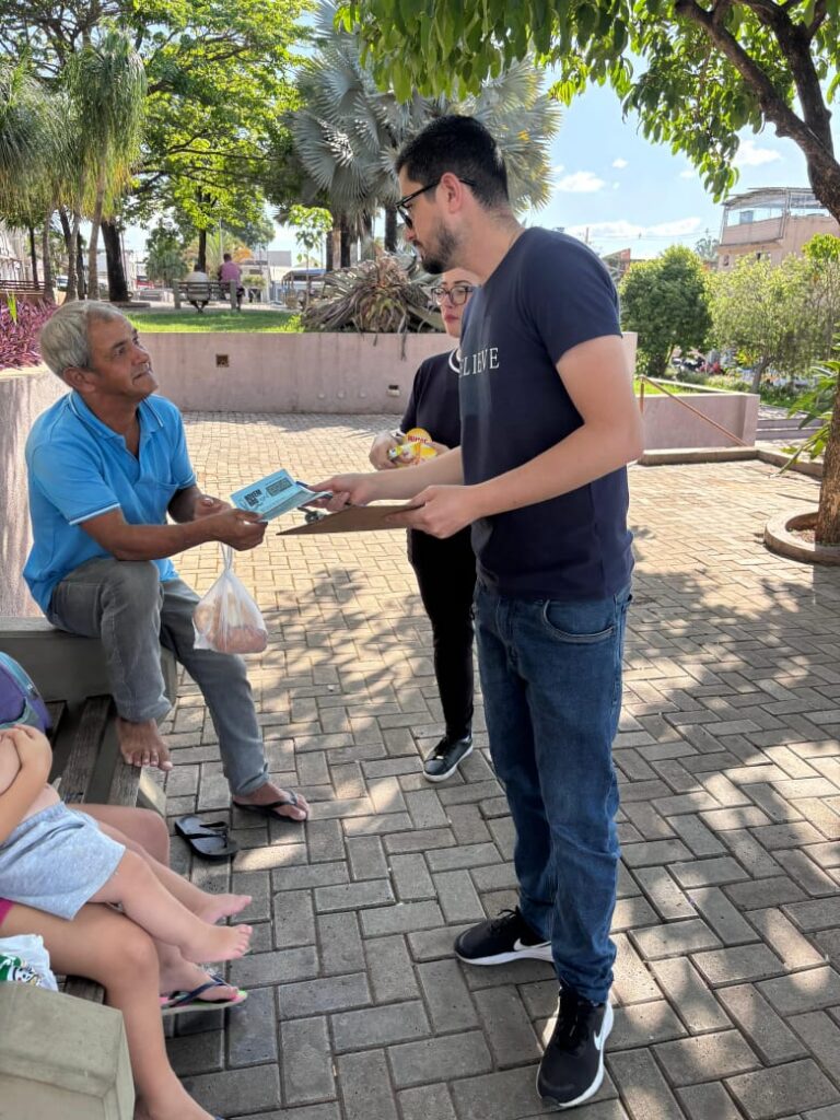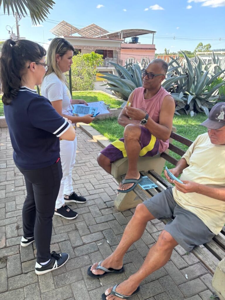 Foram distribuídos panfletos informativos e barras de cereais para homens da comunidade. Durante a atividade, foram abordados temas como a prevenção e o diagnóstico precoce do câncer de próstata e a saúde integral.