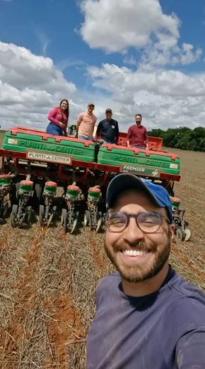 Durante a visita, os estagiários acompanharam o plantio de soja e observaram etapas fundamentais do processo produtivo, como a regulagem da plantadeira, o cálculo da quantidade de adubo por hectare, a definição da população de sementes e da profundidade de semeadura, além do funcionamento do piloto automático e do GPS agrícola do trator.