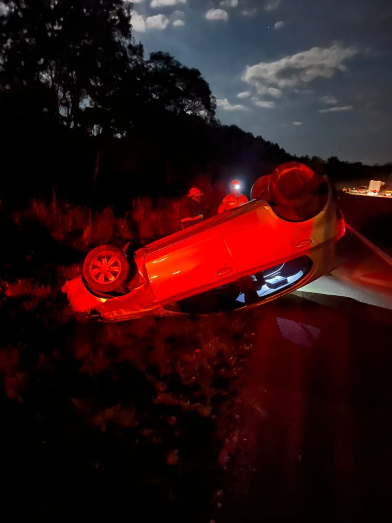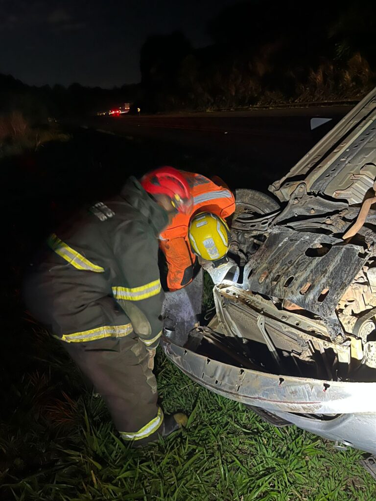 Na madrugada desta sexta-feira (7), a guarnição do Corpo de Bombeiros Militar de Oliveira se deparou com um veículo que havia acabado de capotar no km 605 da BR-381, entre Carmópolis de Minas e Oliveira.