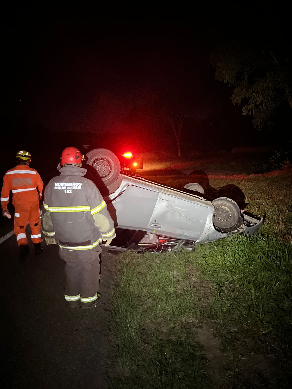 Na madrugada desta sexta-feira (7), a guarnição do Corpo de Bombeiros Militar de Oliveira se deparou com um veículo que havia acabado de capotar no km 605 da BR-381, entre Carmópolis de Minas e Oliveira.