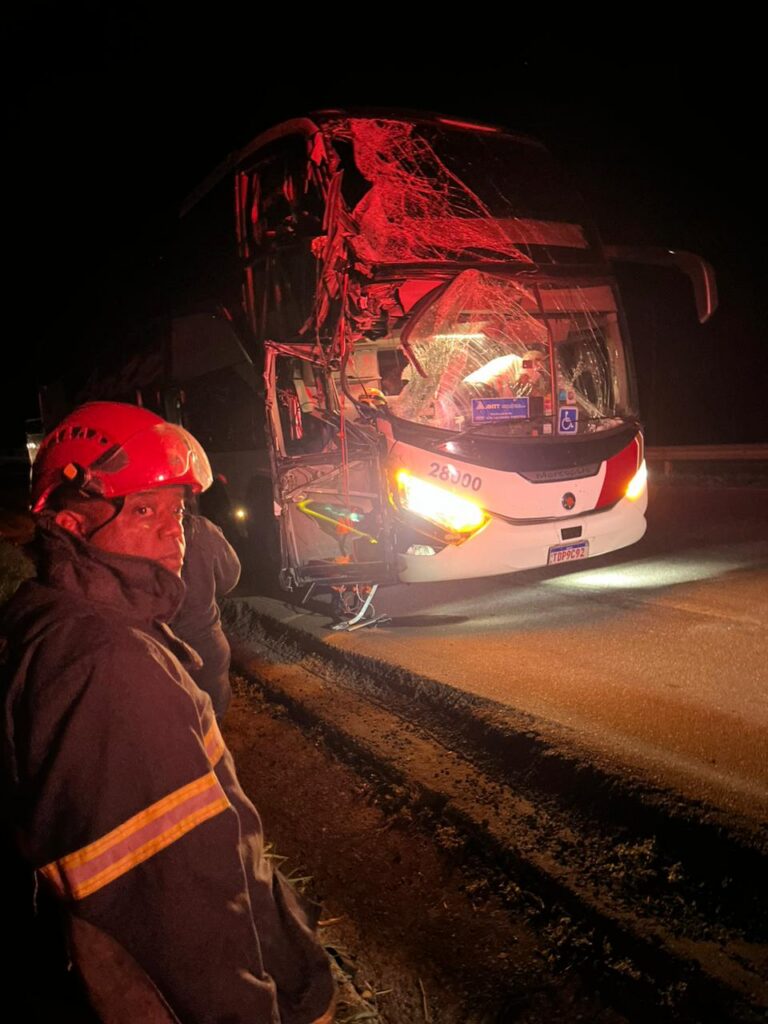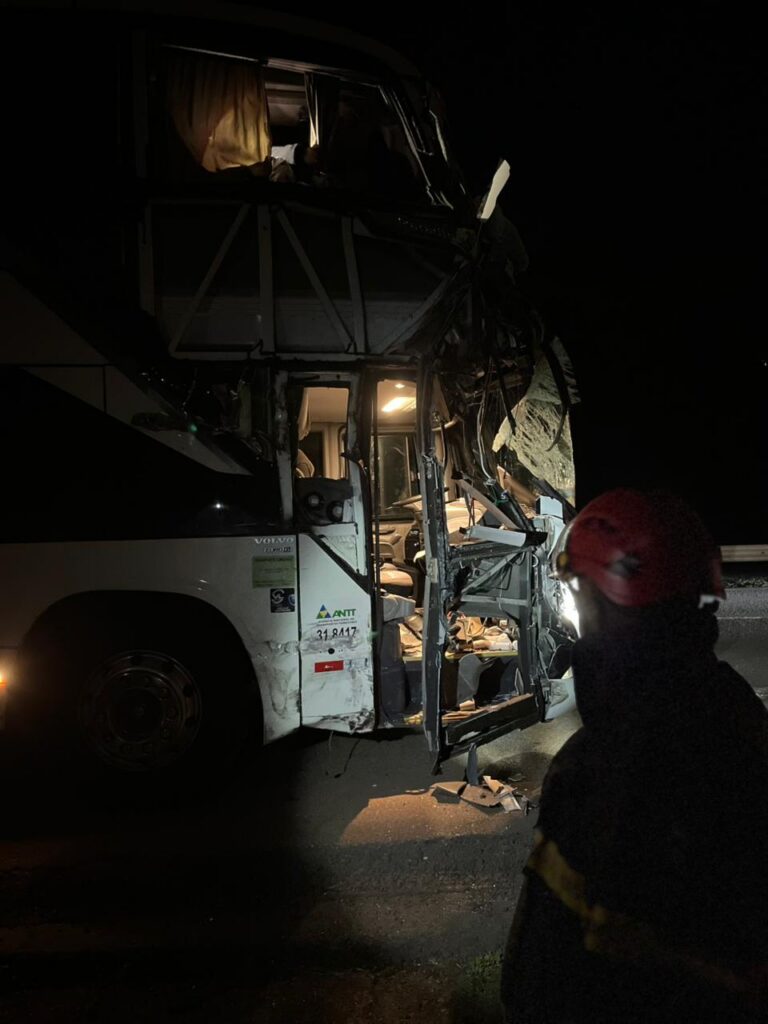 Na madrugada desta sexta-feira (7), o Corpo de Bombeiros Militar de Oliveira foi acionado para atender a uma colisão envolvendo um ônibus interestadual e uma carreta na BR-381, km 603, entre Carmópolis de Minas e Oliveira.
