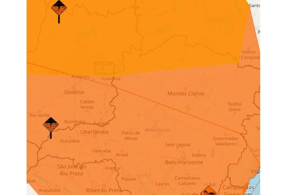 O Instituto Nacional de Meteorologia (Inmet) divulgou na manhã deste sábado (8) dois alertas laranja que atingem Minas Gerais inteira. A maior parte do estado está em alerta para tempestades que podem ser acompanhadas de granizo.