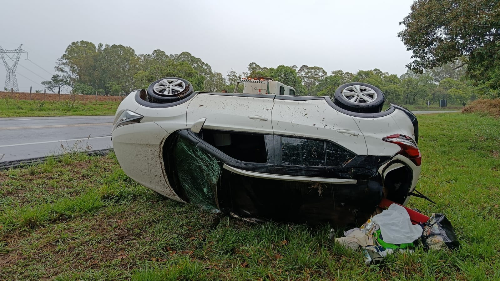 Na manhã deste domingo (2), um carro capotou na MG-050, km 168, na zona rural de Pedra do Indaiá, durante uma chuva.