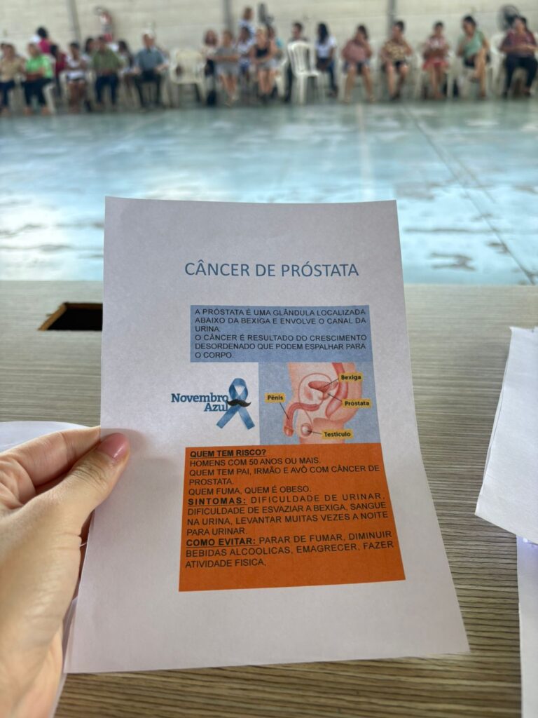 Foi realizada nesta quarta-feira, 12 de novembro, uma palestra informativa sobre a conscientização do câncer de próstata, em alusão ao Novembro Azul, em Córrego Fundo. O evento foi conduzido pela médica Thaís Andrade para os participantes do grupo do Serviço de Convivência e Fortalecimento de Vínculos da Melhor Idade Estrela do Amanhã.