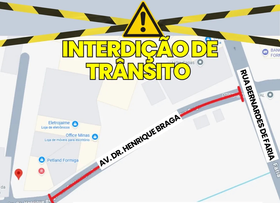 O Serviço Autônomo de Água e Esgoto (SAAE) de Formiga informou que a Avenida Dr. Henrique Braga — nas proximidades da Casa 505 — será parcialmente interditada na próxima terça-feira (16) para a realização de obras na rede coletora de esgoto.