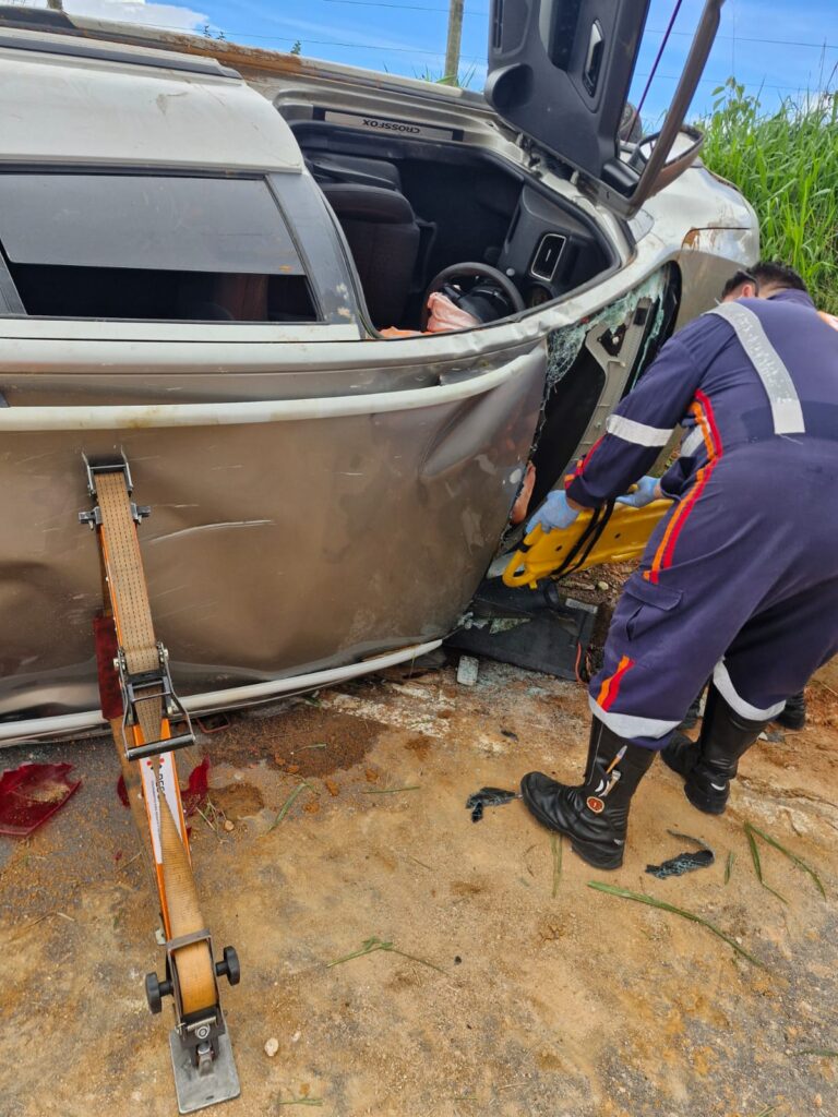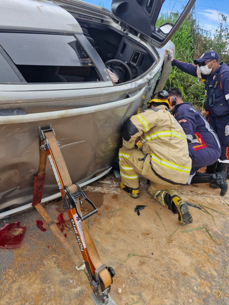 O atendimento pré-hospitalar foi realizado de forma integrada entre o Samu e o Corpo de Bombeiros Militar. Durante a ocorrência, constatou-se que a vítima do sexo masculino encontrava-se retida no interior do veículo, sendo necessária a intervenção da guarnição do CBMMG, que realizou a retirada da vítima por meio de técnicas adequadas de salvamento veicular.