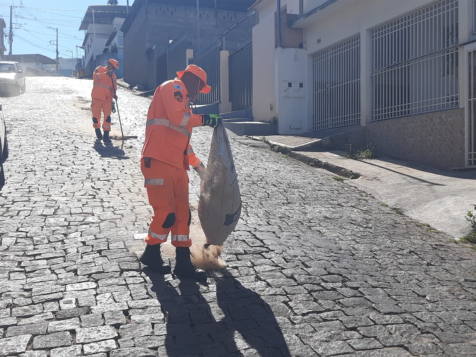 Bombeiros atuam para evitar acidentes após derramamento de óleo em rua de Formiga