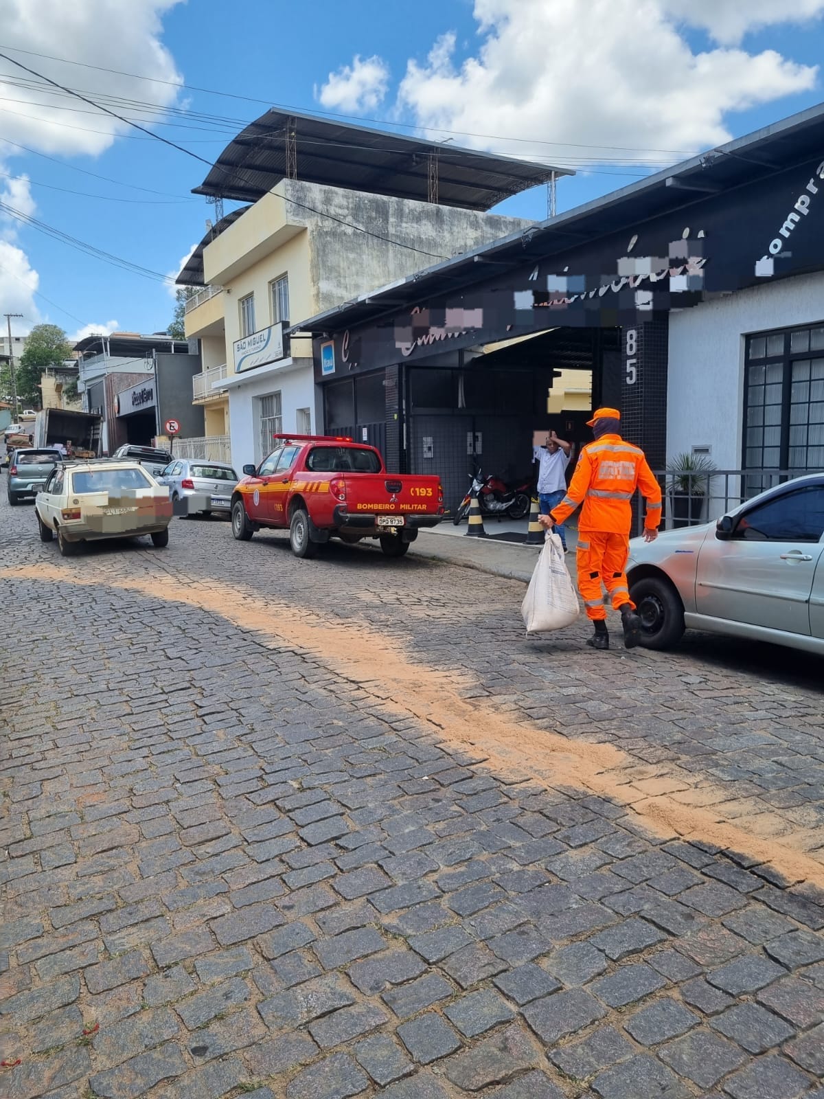Nessa segunda-feira (1), o Corpo de Bombeiros foi acionado para atender uma ocorrência envolvendo risco de derrapagem provocado por uma mancha de óleo espalhada sobre a rua Eduardo Pereira da Rocha, no Centro de Formiga.