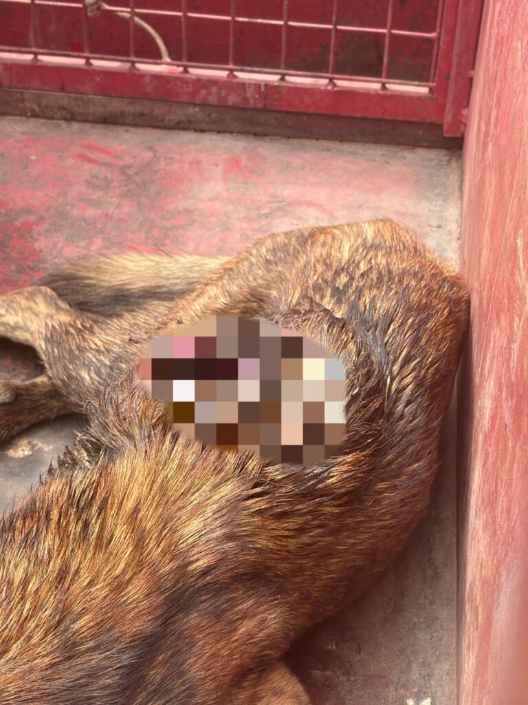 No local, a equipe encontrou o animal deitado, bastante debilitado, apresentando um extenso ferimento no dorso, infestado por larvas de mosquito.