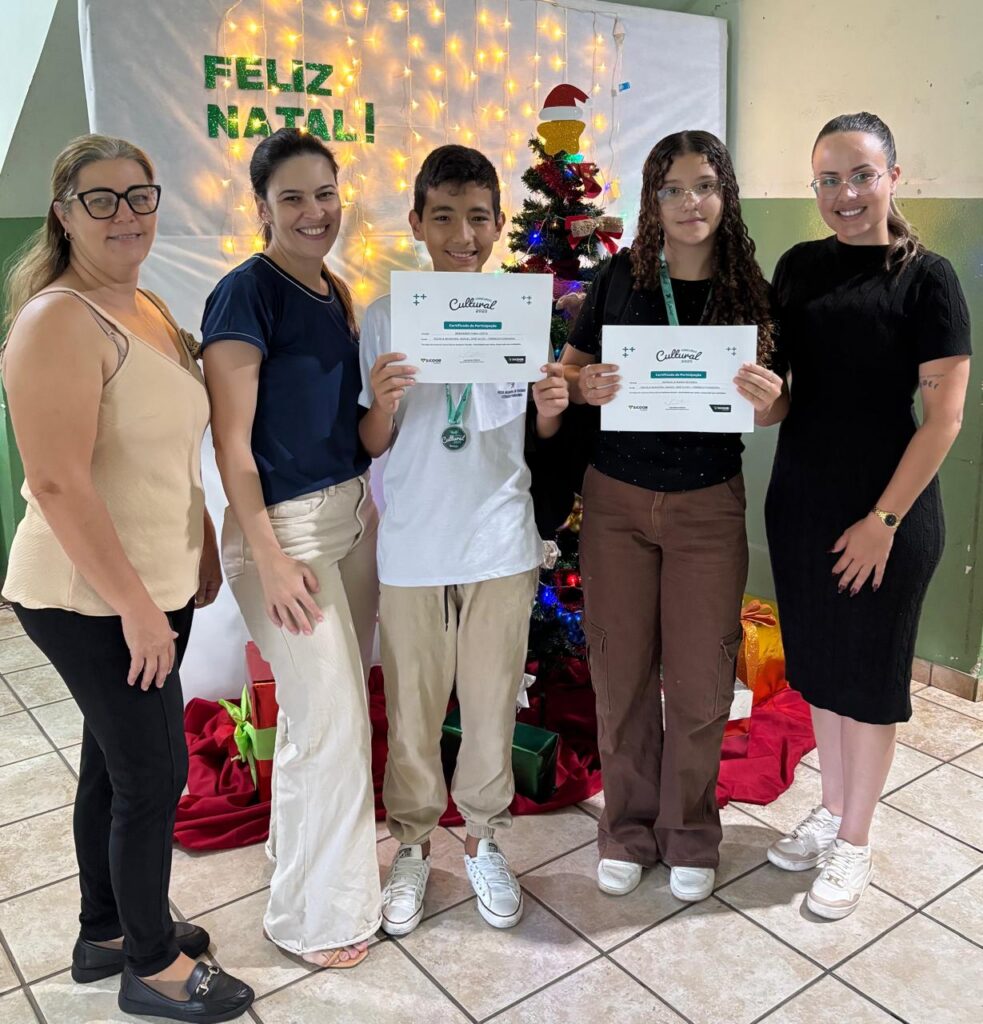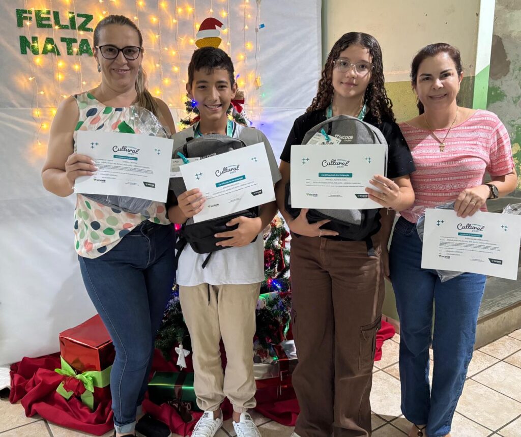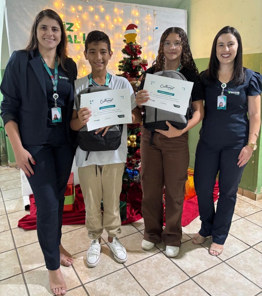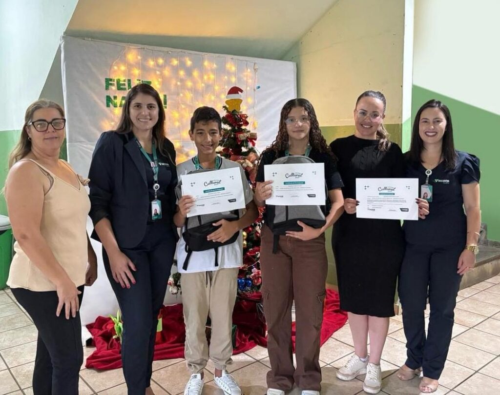 Alunos das escolas municipais Rafael José Alves e Tereza Maria de Faria Vaz, de Córrego Fundo, foram premiados no Concurso Cultural do Sicoob Credifor, nos dias 2 e 3 de dezembro de 2025. O concurso, promovido pelo Instituto Sicoob, reconhece produções textuais de estudantes do ensino fundamental que abordam o cooperativismo em seu cotidiano escolar.