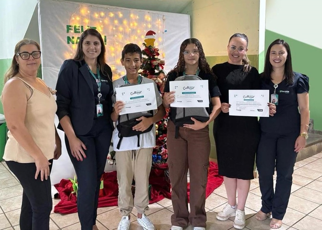 Alunos das escolas municipais Rafael José Alves e Tereza Maria de Faria Vaz, de Córrego Fundo, foram premiados no Concurso Cultural do Sicoob Credifor, nos dias 2 e 3 de dezembro de 2025. O concurso, promovido pelo Instituto Sicoob, reconhece produções textuais de estudantes do ensino fundamental que abordam o cooperativismo em seu cotidiano escolar.