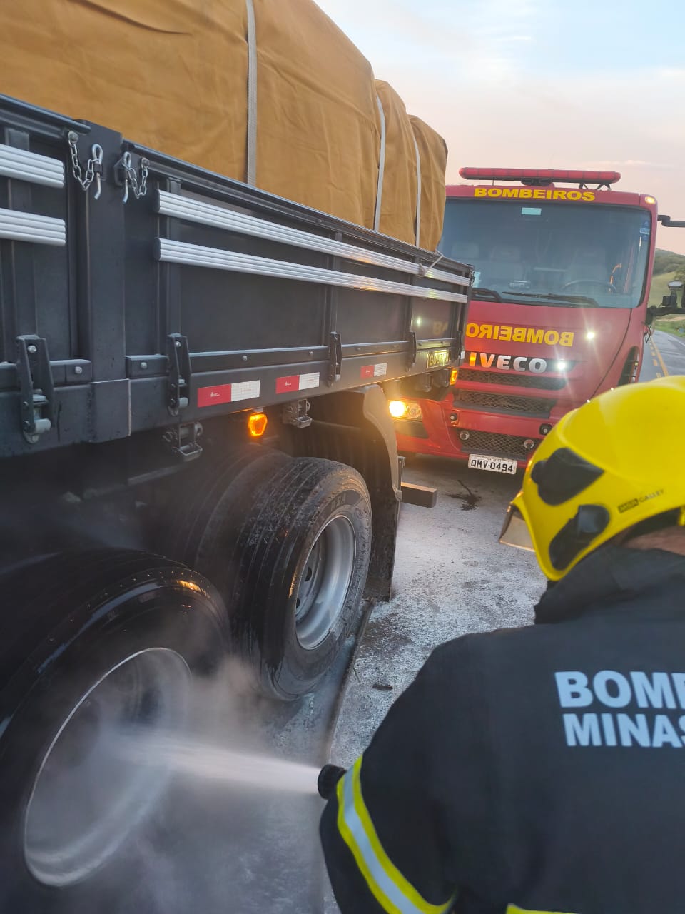 No fim da tarde dessa terça-feira (30), militares da 4ª Companhia do Corpo de Bombeiros foram acionados para atendimento de uma ocorrência de incêndio em carreta, na BR-354, nas proximidades do Posto Formigão.