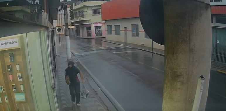 Segundo o comerciante, o caso aconteceu por volta das 5h30 da manhã, quando um homem encapuzado se aproximou da loja e tentou arrombar a porta utilizando uma pedra, golpeando o vidro na tentativa de quebrá-lo. Como não conseguiu êxito, o indivíduo deixou o local e seguiu em direção à rua Sete de Setembro.