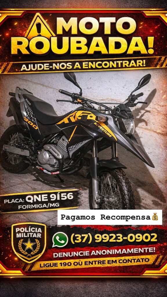 A vítima informou que, desde a data do ocorrido, não obteve qualquer informação sobre o paradeiro do veículo. Diante da situação, ele pede apoio da população e da imprensa para auxiliar na divulgação do caso, na esperança de obter informações que possam levar à localização da motocicleta – placa QNE 9i56.