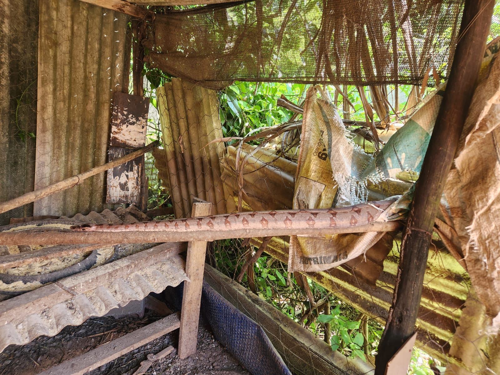 Uma jiboia foi capturada pelo Corpo de Bombeiros na manhã deste sábado (27), após ser encontrada em um galinheiro de uma residência no bairro Belvedere, em Formiga. A ocorrência foi registrada por volta das 11h21.