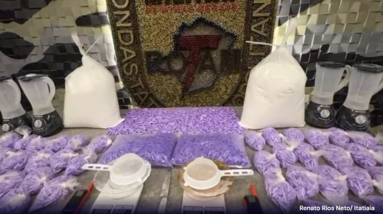Ainda segundo a corporação, o espaço funcionava como um laboratório de preparo de cocaína. Os militares relataram que o local era estruturado de forma quase industrial, com vários liquidificadores, balanças de precisão e utensílios usados para misturar e manipular o entorpecente.