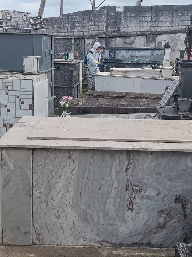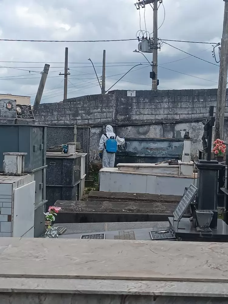 De acordo com o Município, a aplicação foi feita por equipe especializada, com produtos adequados e dentro dos protocolos de segurança. O objetivo é oferecer mais tranquilidade às famílias que visitam o cemitério, além de preservar o bem-estar no entorno da área.
