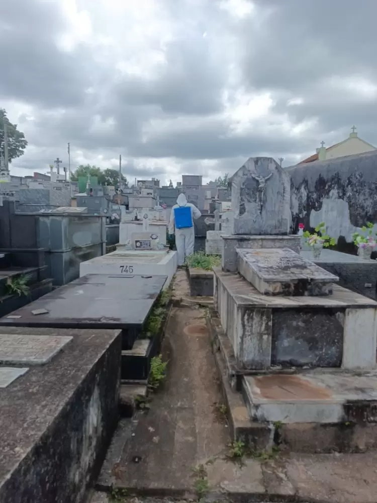 De acordo com o Município, a aplicação foi feita por equipe especializada, com produtos adequados e dentro dos protocolos de segurança. O objetivo é oferecer mais tranquilidade às famílias que visitam o cemitério, além de preservar o bem-estar no entorno da área.