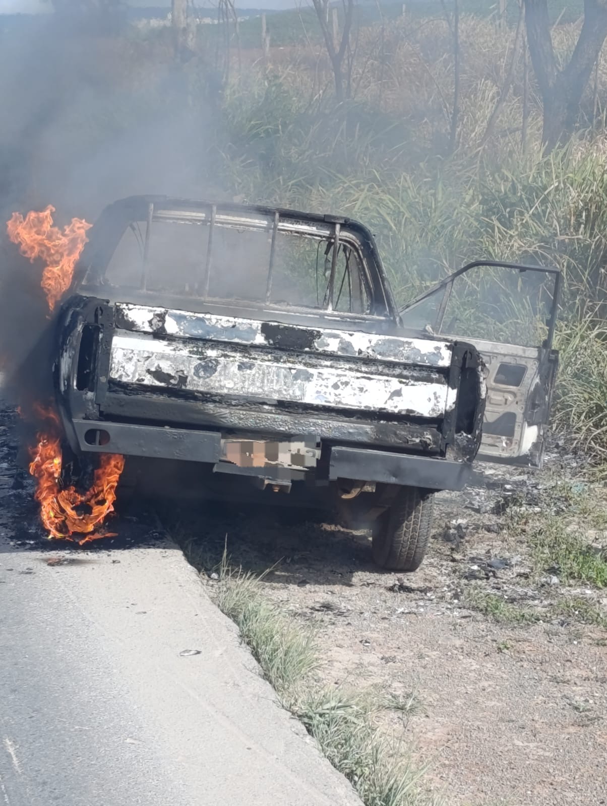 Ao chegarem ao local, os militares constataram que o veículo estava parado no acostamento da rodovia e já havia sido completamente tomado pelas chamas. A guarnição montou rapidamente a linha de combate e realizou a extinção do incêndio, utilizando aproximadamente 2 mil litros de água.