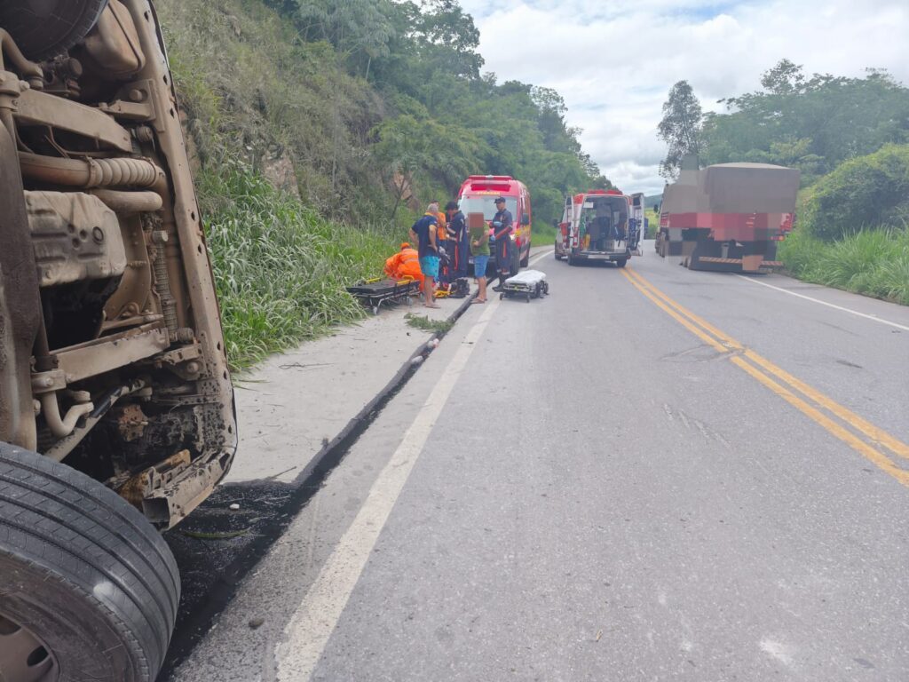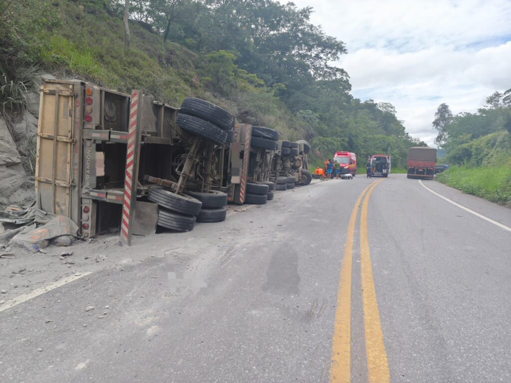 Nessa quarta-feira (7), a Guarnição do Corpo de Bombeiros Militar foi acionada para atendimento a uma ocorrência de capotamento de caminhão na BR-354, na altura do km 517, em Formiga.