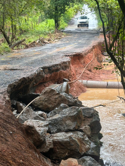 Um trecho da estrada de acesso à comunidade rural de Falhas, em Córrego Fundo, está parcialmente interditado após um deslizamento de terra. O incidente foi causado pelas fortes chuvas registradas na região. A Administração Municipal informou que o local foi sinalizado. Os órgãos competentes orientam a população que precisa trafegar pelo local a redobrar a atenção e reduzir a velocidade ao passar pelo trecho afetado. A previsão é de que os serviços de avaliação e recuperação da via sejam realizados após o término do período crítico de chuvas.