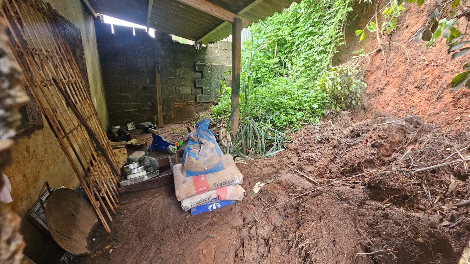 Durante a avaliação, os técnicos analisaram um imóvel situado abaixo de um talude de corte que apresentava sinais de instabilidade, com pequenos deslizamentos de terra visíveis. Também foi constatada a ausência de vegetação na parte superior da encosta, fator que contribui para o enfraquecimento do solo e aumenta o risco de deslizamentos, especialmente em períodos chuvosos.