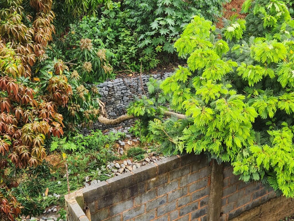 • Deslizamento de terra às margens de córrego derruba árvore sobre muro em Formiga