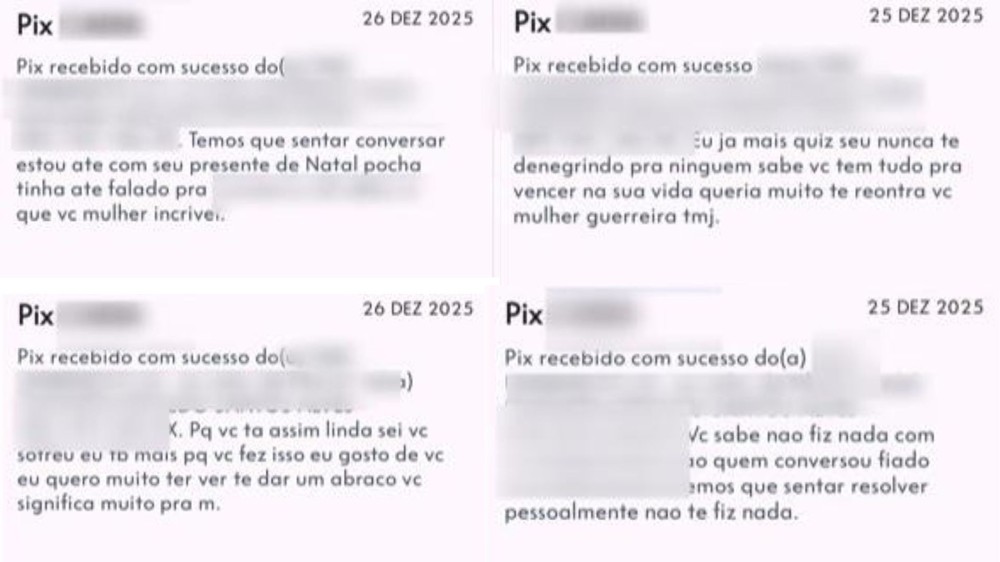 O nome do investigado não foi divulgado pela polícia. A prisão preventiva dele foi solicitada à Justiça depois que a vítima apresentou à polícia, em dezembro de 2025, os comprovantes das transferências bancárias. Em cada envio, o homem utilizava o campo de mensagens para falar sobre o relacionamento dos dois. Veja acima alguns prints cedidos pela Polícia Civil ao g1.
